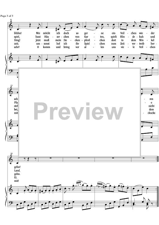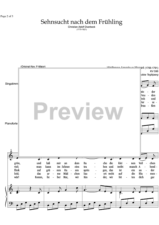 "Sehnsucht nach dem Frühling KV596" Sheet Music by Wolfgang Amadeus Mozart