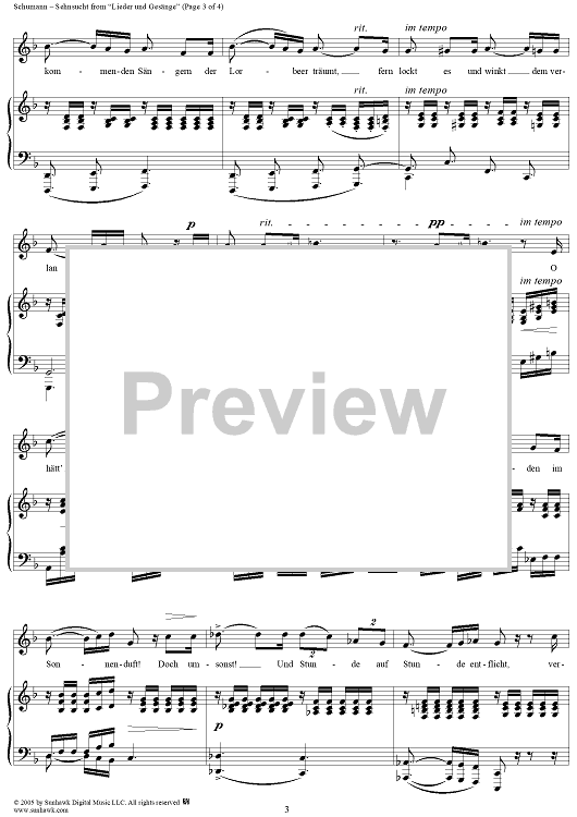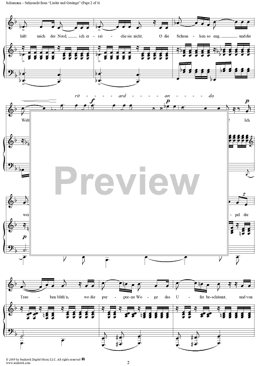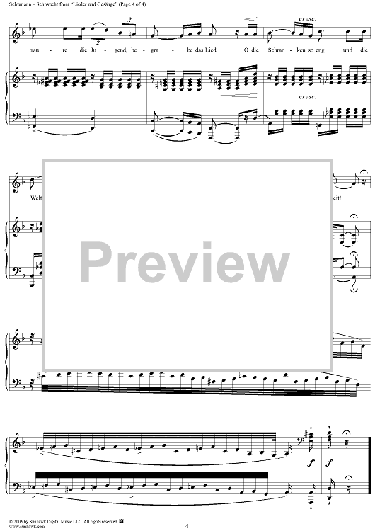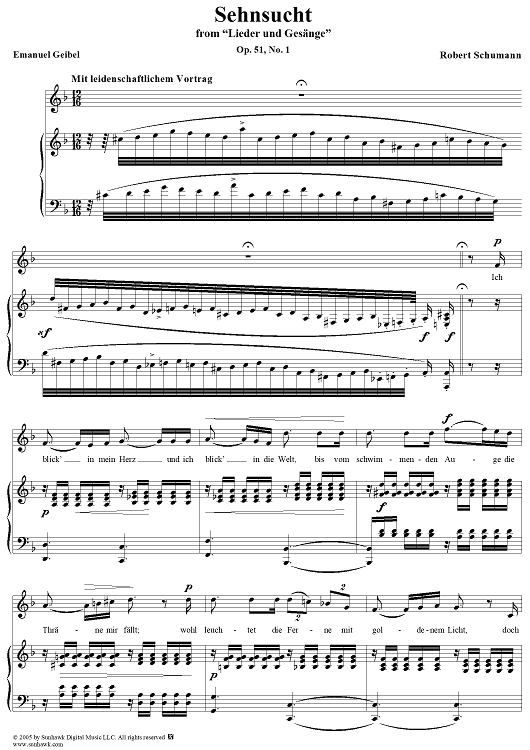 Digital Sheet Music for Sehnsucht, Op. 51, No. 1 by Emanuel Geibel, Robert Schumann scored for Voice/Piano; id:307108