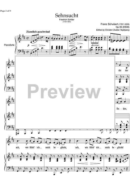 "Sehnsucht Op.39 D636" Sheet Music by Franz Schubert