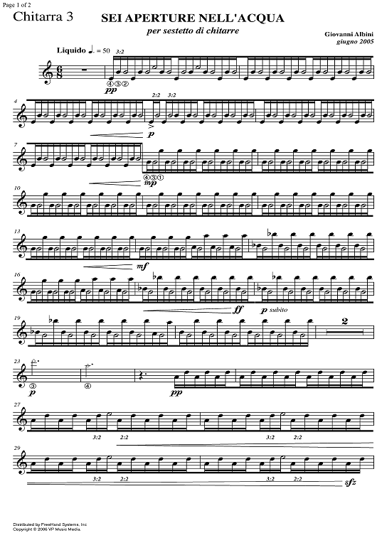 "Sei aperture nell'acqua - Guitar 3" Sheet Music by Giovanni Albini