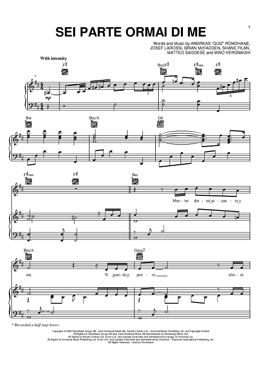 Digital Sheet Music for Sei Parte Ormai Di Me by Il Divo, Josef Larossi, Brian McFadden, Quiz, Mino Vergnaghi scored for Piano/Vocal/Chords; id:387129