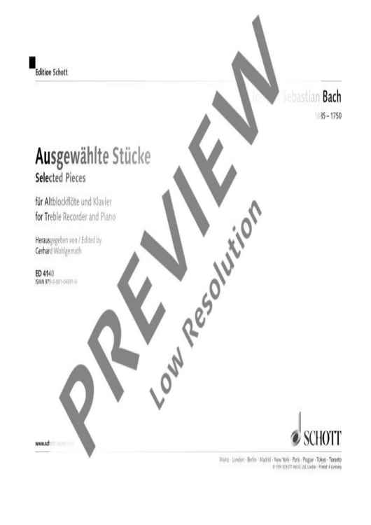 Digital Sheet Music for Selected Pieces by Johann Sebastian Bach scored for Treble Recorder And Piano; id:473077