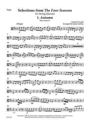 Digital Sheet Music for Selections from The Four Seasons - Viola by Antonio Vivaldi, Lynne Latham scored for String Quartet; id:464125