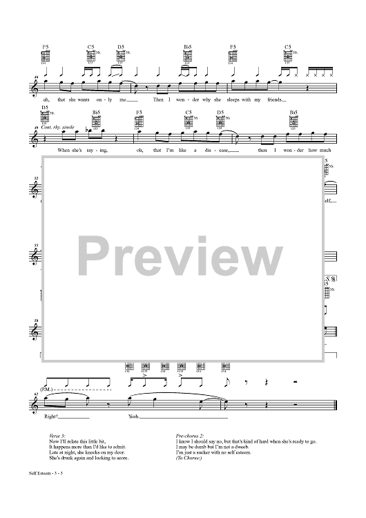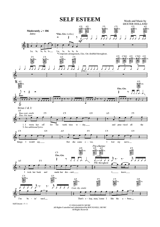 Digital Sheet Music for Self Esteem by Dexter Holland, The Offspring scored for Guitar Tab/Vocal/Chords; id:457726