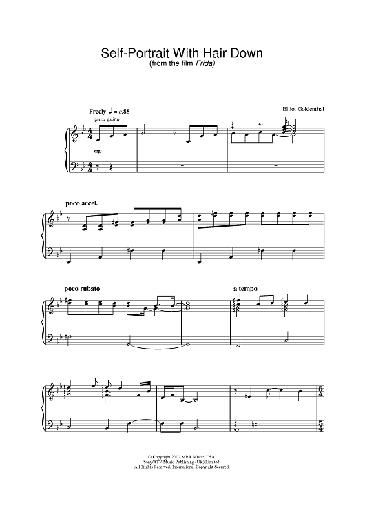 Digital Sheet Music for Self-Portrait With Hair Down by Elliot Goldenthal, Frida scored for Piano; id:382977