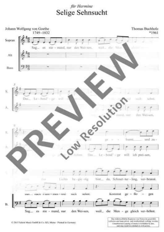 Digital Sheet Music for Selige Sehnsucht - Choral Score by Thomas Buchholz scored for Mixed Choir (sab) A Cappella; id:488613
