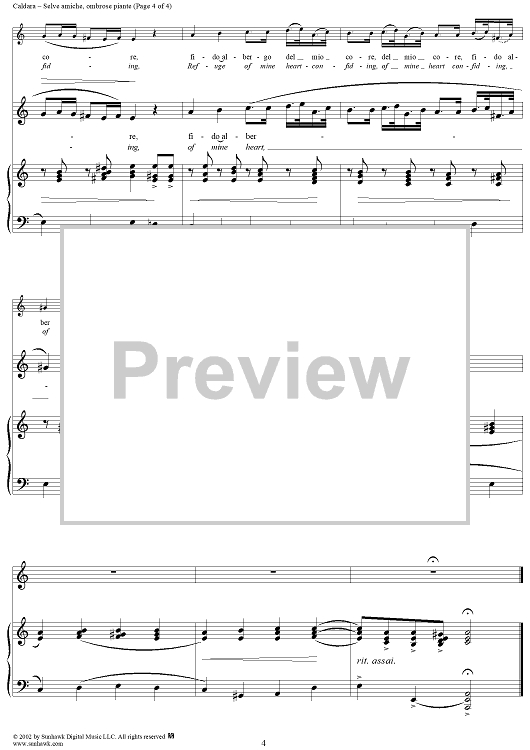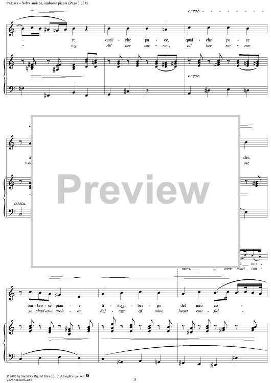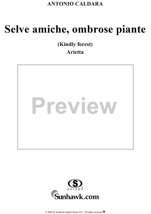 Digital Sheet Music for Selve amiche, ombrose piante (Kindly Forest) by Antonio Caldara scored for Voice/Piano; id:273359