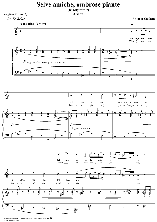 "Selve amiche, ombrose piante (Kindly Forest)" Sheet Music by Antonio Caldara