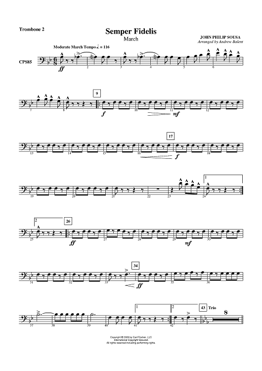 Digital Sheet Music for Semper Fidelis - Trombone 2 by John Philip Sousa, Andrew Balent scored for Concert Band; id:405545