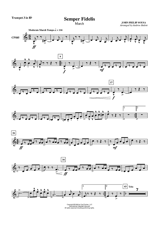 Digital Sheet Music for Semper Fidelis - Trumpet 3 in B-flat by John Philip Sousa, Andrew Balent scored for Concert Band; id:405548