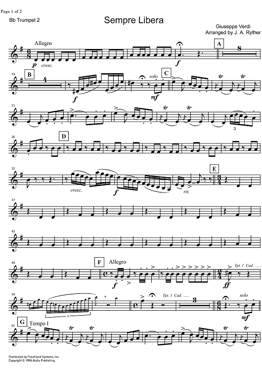 "Sempre Libera - B-flat Trumpet 2" Sheet Music by Giuseppe Verdi