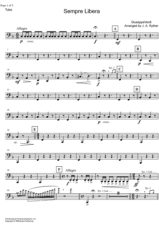 "Sempre Libera - Tuba" Sheet Music by Giuseppe Verdi