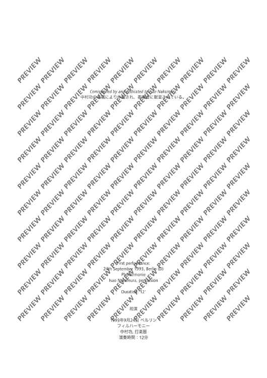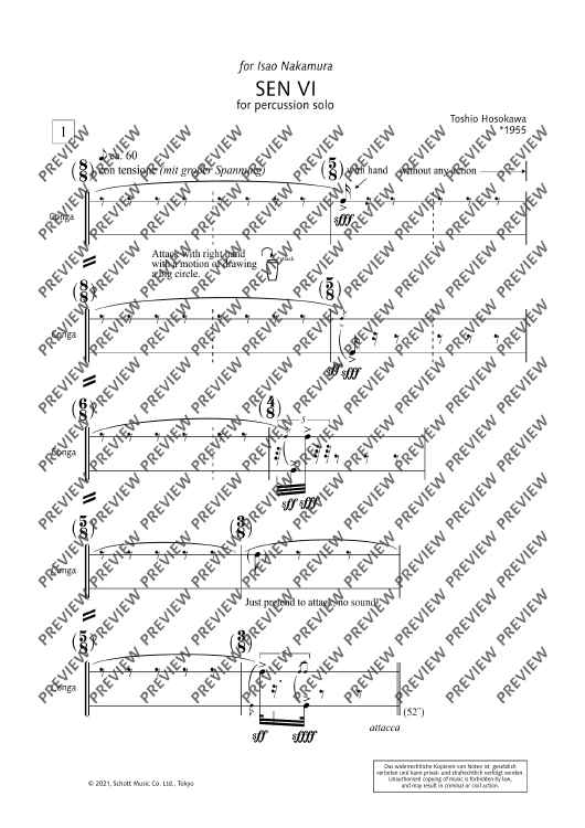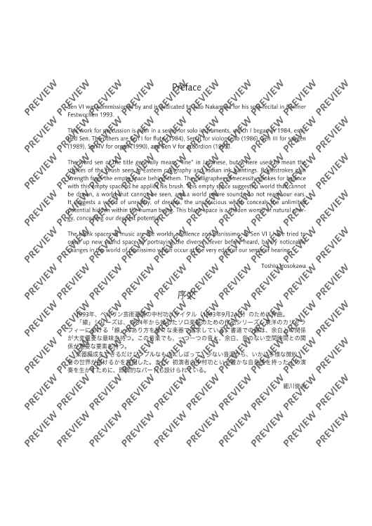 Digital Sheet Music for Sen VI - Performing Score by Toshio Hosokawa scored for Percussion (b.d, 2cong, 2bong, Cym.ant); id:496596