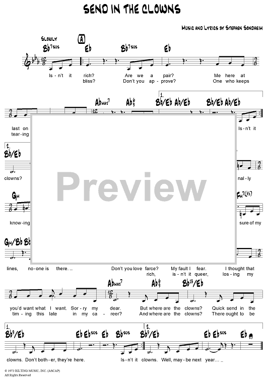 Digital Sheet Music for Send in the Clowns by Stephen Sondheim, Judy Collins, Barbra Streisand scored for Lead Sheet; id:312245