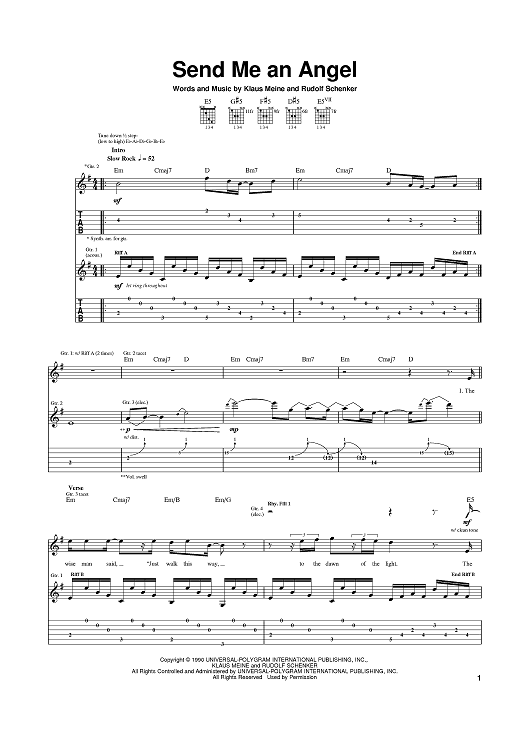 Digital Sheet Music for Send Me An Angel by Rudolf Schenker, Klaus Meine, The Scorpions scored for Guitar Tab; id:374862