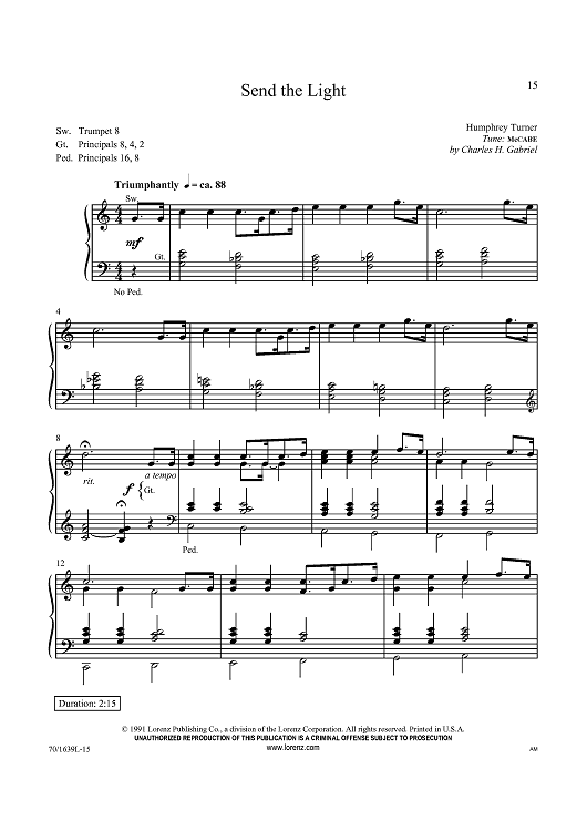 Digital Sheet Music for Send the Light by Charles H. Gabriel, Humphrey Turner scored for Organ Solo; id:434013
