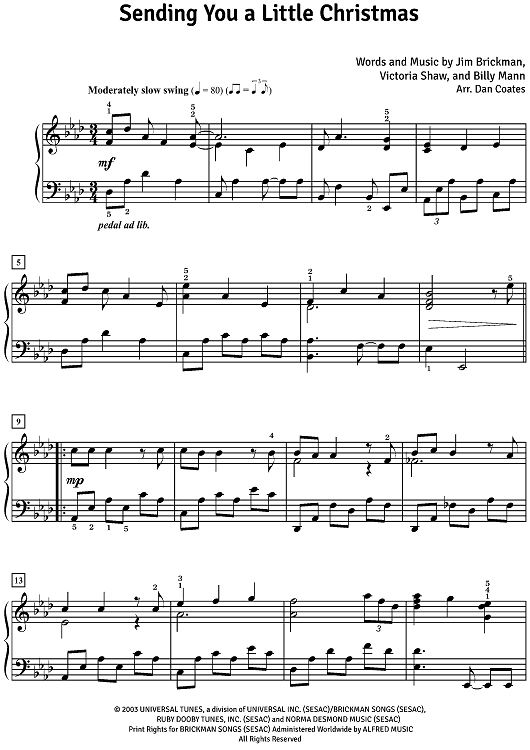 Digital Sheet Music for Sending You a Little Christmas by Jim Brickman, Dan Coates, Victoria Shaw, Billy Mann scored for Piano Solo; id:501202