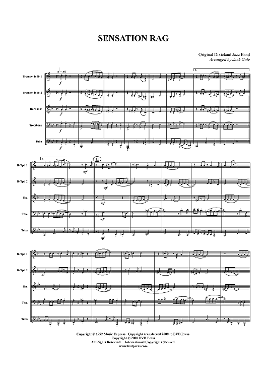 Digital Sheet Music for Sensation Rag - Score by , Original Dixieland Jazz Band, Jack Gale scored for Brass Quintet; id:411827