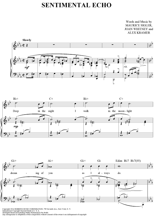 Digital Sheet Music for Sentimental Echo by Alex Kramer, Joan Whitney, Maurice Sigler scored for Piano/Vocal/Chords; id:428172