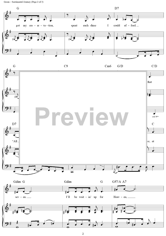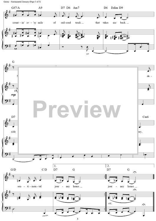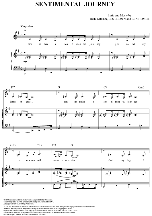 Digital Sheet Music for Sentimental Journey by Doris Day, Bud Green, Les Brown, Ben Homer, Les Brown & His Band of Reknown scored for Piano/Vocal/Chords; id:315279