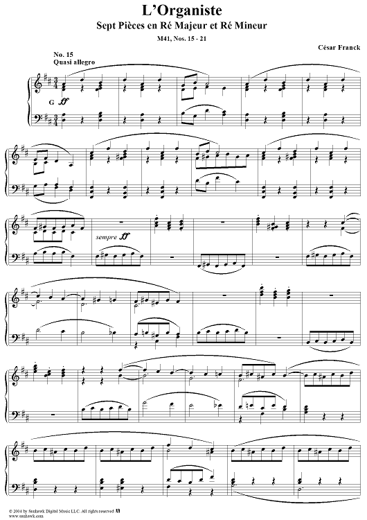 "Sept Pièces en ré majeur et en ré mineur" Sheet Music by César Franck