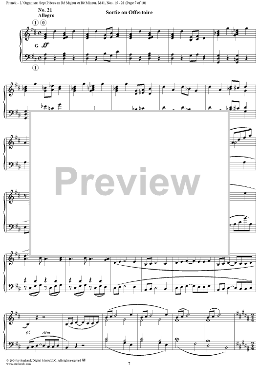 Digital Sheet Music for Sept Pièces en ré majeur et en ré mineur by César Franck scored for Organ Solo; id:303558