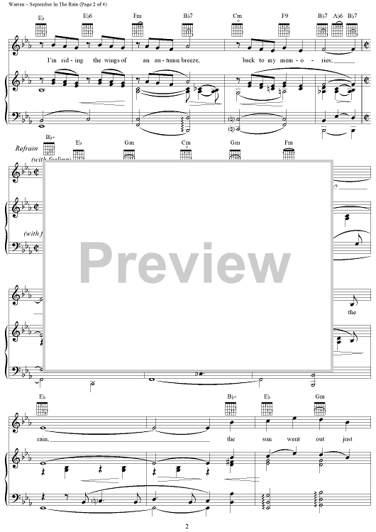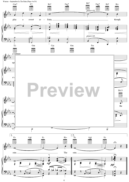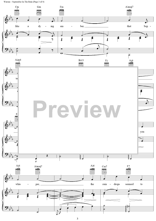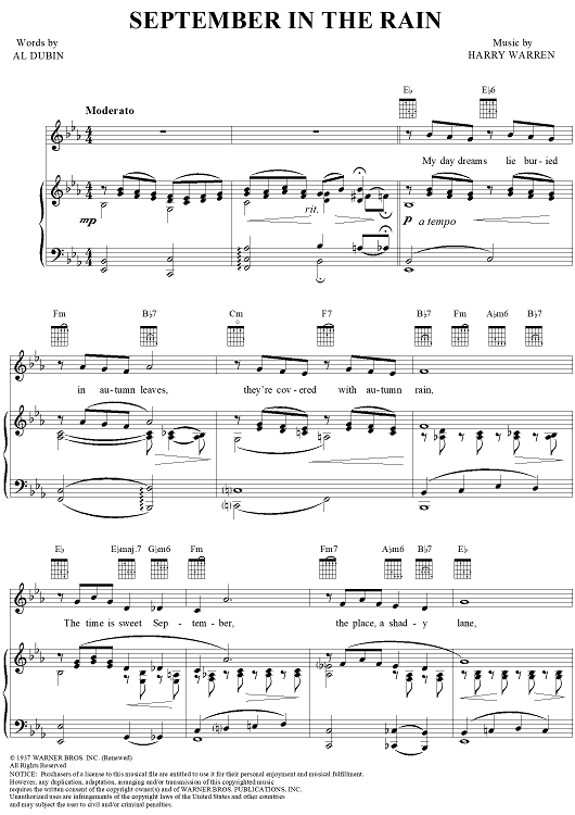 Digital Sheet Music for September in the Rain by Frank Sinatra, Harry Warren, Al Dubin, Guy Lombardo scored for Piano/Vocal/Chords; id:111949