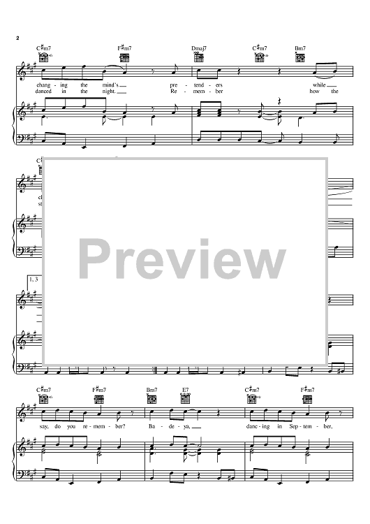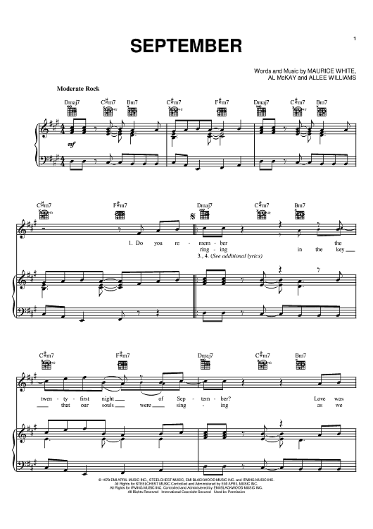 Digital Sheet Music for September by Maurice White, Al McKay, Allee Willis, Earth, Wind & Fire scored for Piano/Vocal/Chords; id:397334