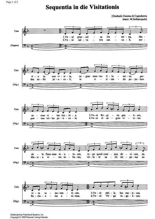 Digital Sheet Music for Sequentia in die Visitationis by , Marco Sofianopulo, Traditional scored for Choir/Organ; id:329049