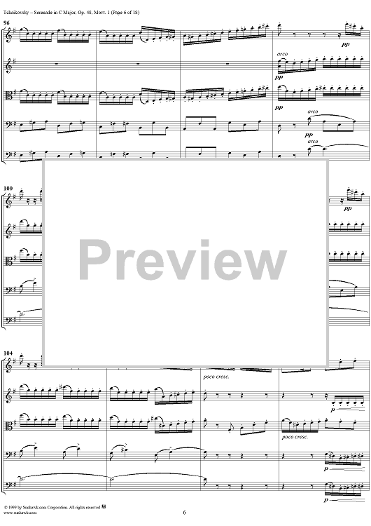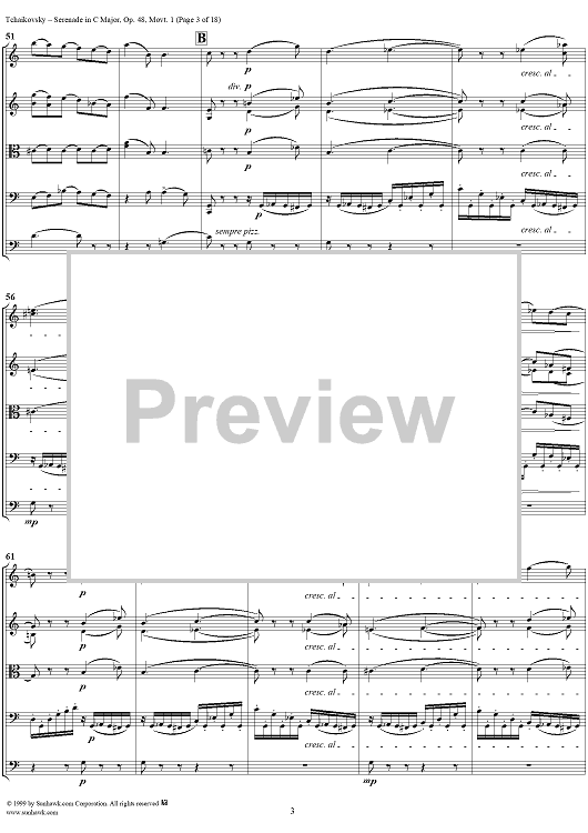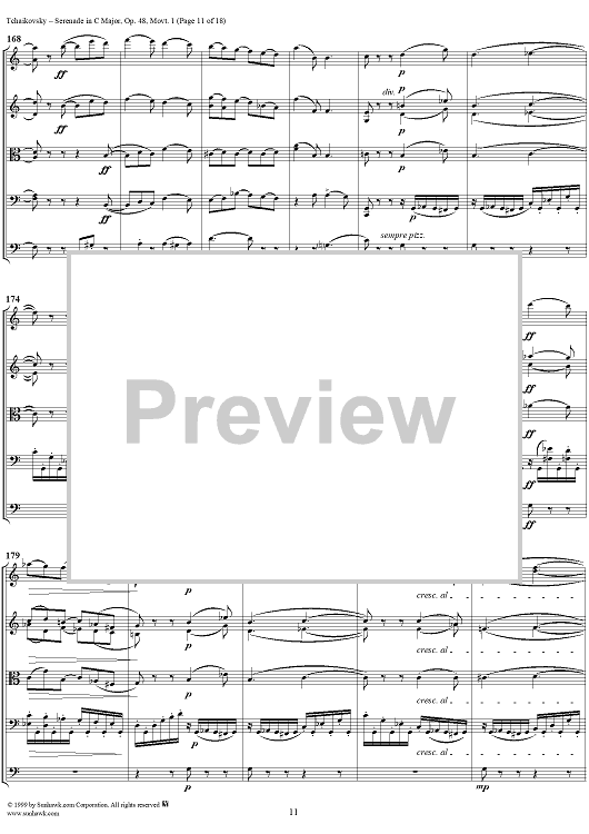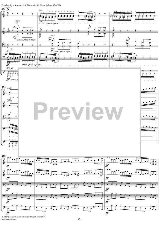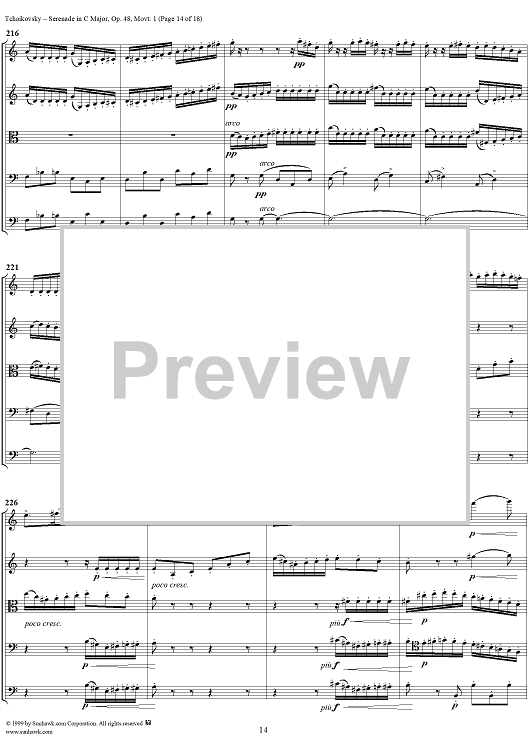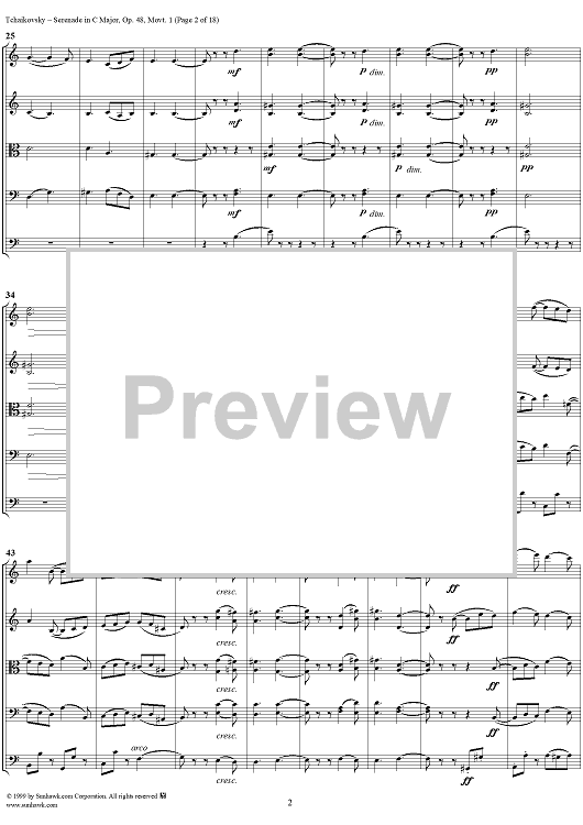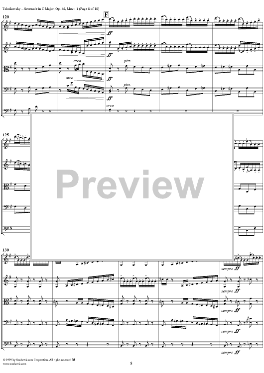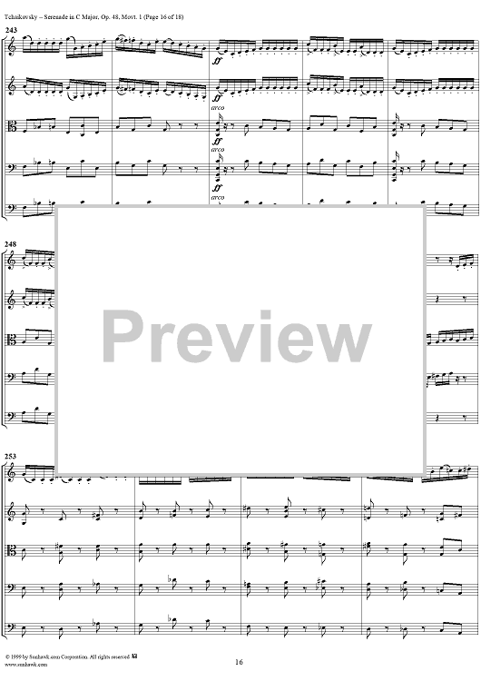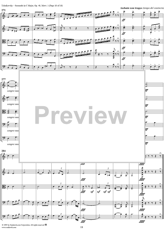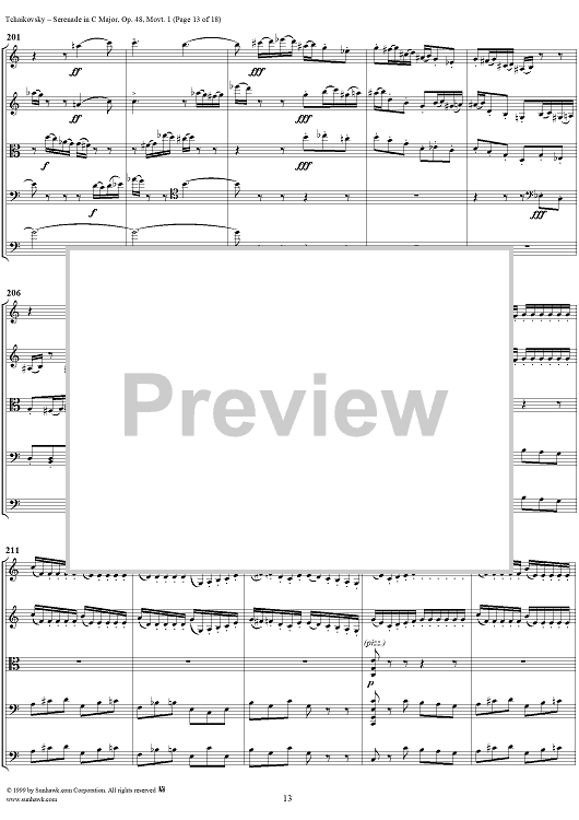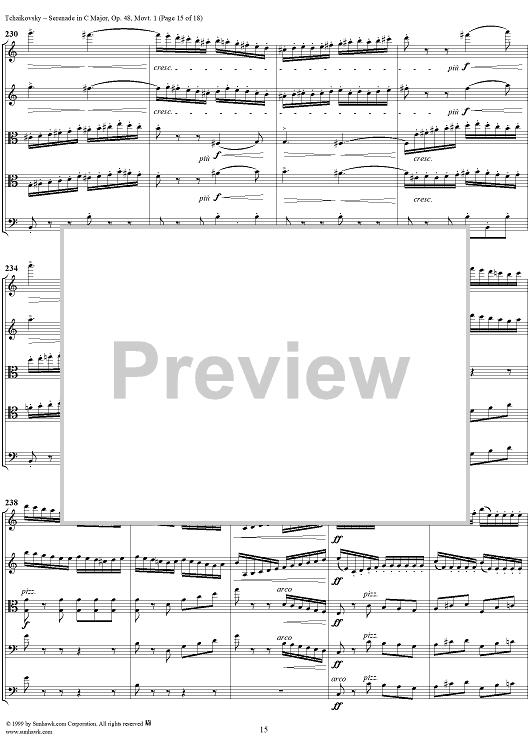 Digital Sheet Music for Serenade for String Orchestra in C major (C-dur). Movement I, Pezzo in forma di sonatina - Score by Peter Ilyich Tchaikovsky scored for String Orchestra; id:259875