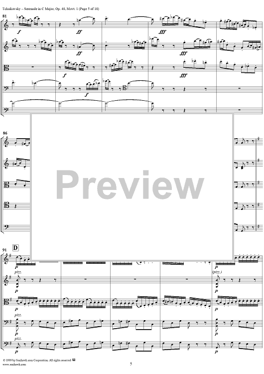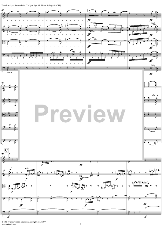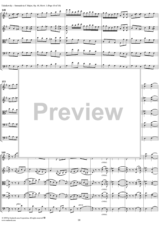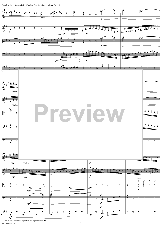 "Serenade for String Orchestra in C major (C-dur). Movement I, Pezzo in forma di sonatina - Score" Sheet Music by Peter Ilyich Tchaikovsky