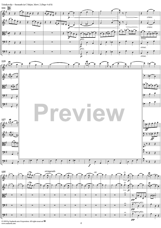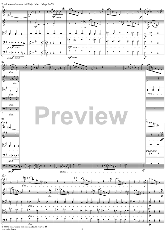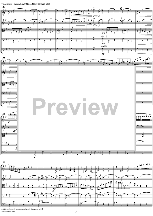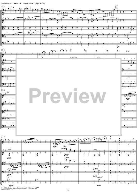 Digital Sheet Music for Serenade for String Orchestra in C major (C-dur). Movement II, Valse - Score by Peter Ilyich Tchaikovsky scored for String Orchestra; id:259869