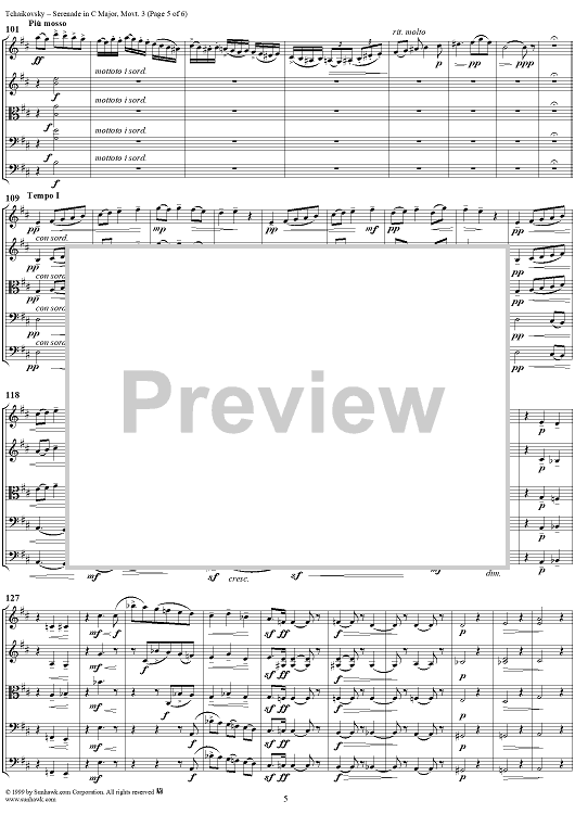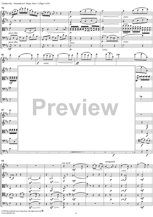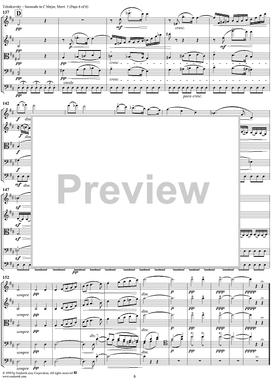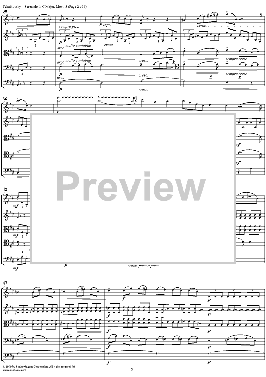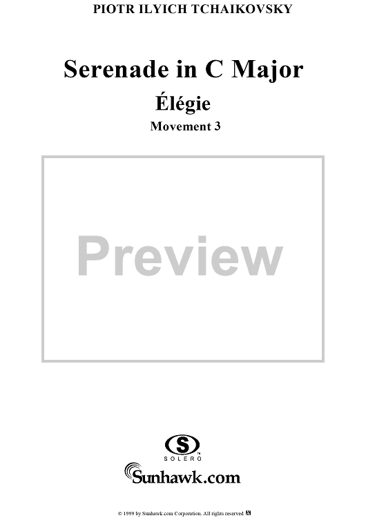 Digital Sheet Music for Serenade for String Orchestra in C major (C-dur). Movement III, Elegia - Score by Peter Ilyich Tchaikovsky scored for String Orchestra; id:259870