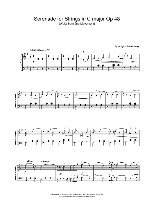 Digital Sheet Music for Serenade for Strings in C major Op 48 by Peter Ilyich Tchaikovsky scored for Piano; id:377877