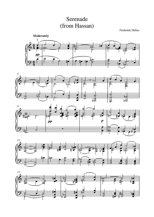 Digital Sheet Music for Serenade From Hassan by Frederick Delius scored for Piano; id:385826