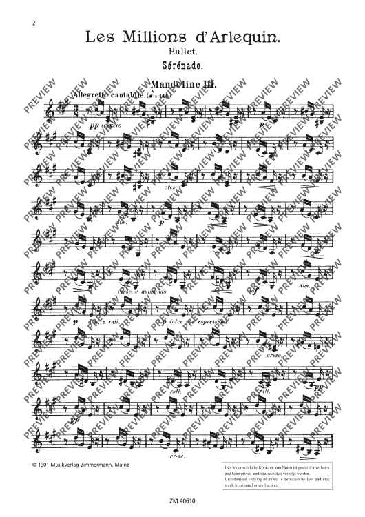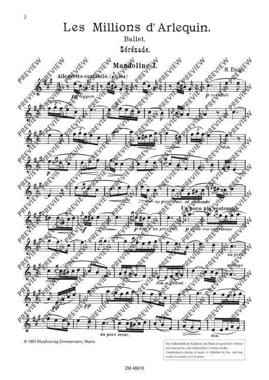 "Serenade from "Les Millions d'Harlequin" - Set of Parts" Sheet Music by Riccardo Drigo