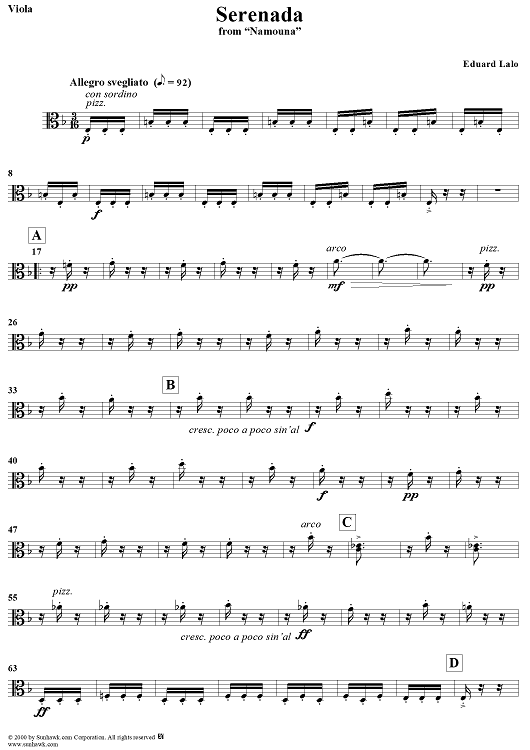 Digital Sheet Music for Sérénade from "Namouna" - Viola by Edouard Victoire Antoine Lalo scored for String Quartet; id:250434
