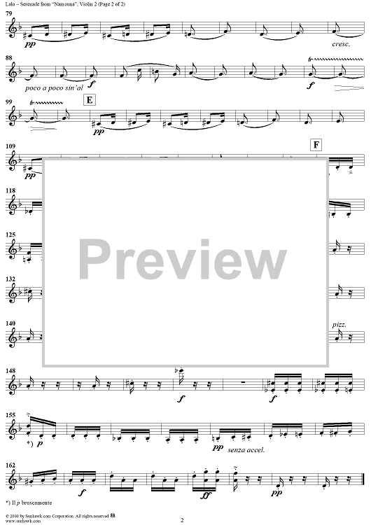 Digital Sheet Music for Sérénade from "Namouna" - Violin 2 by Edouard Victoire Antoine Lalo scored for String Quartet; id:250427