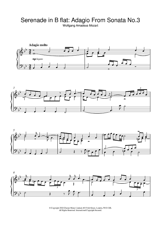 Digital Sheet Music for Serenade in B flat: Adagio From Sonata No.3 by Various scored for Piano; id:377759
