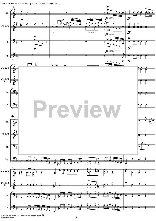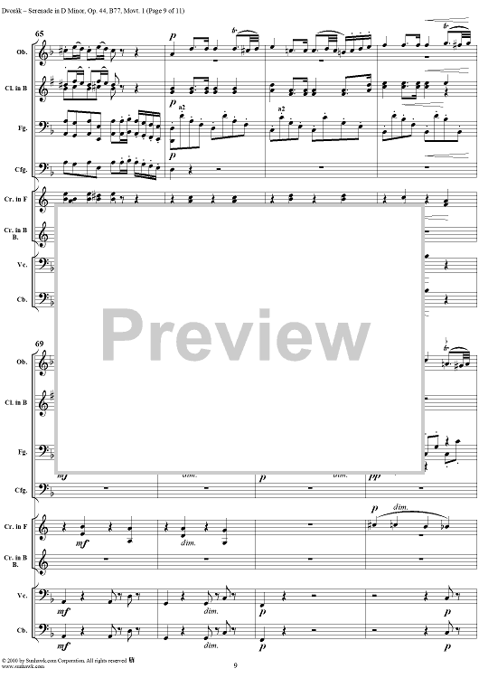 Digital Sheet Music for Serenade in D Minor, Op. 44, B77, Movement 1 - Score by Antonín Dvorák scored for Wind Ensemble; id:270824
