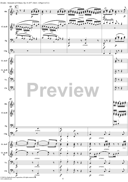 "Serenade in D Minor, Op. 44, B77, Movement 1 - Score" Sheet Music by Antonín Dvorák