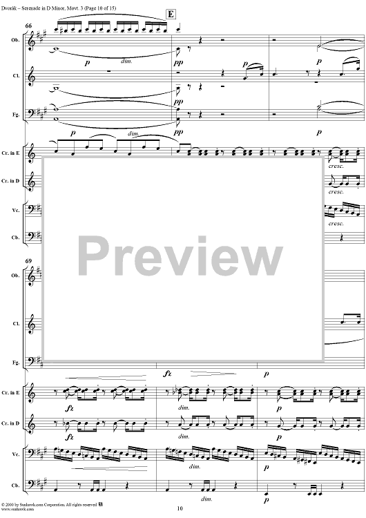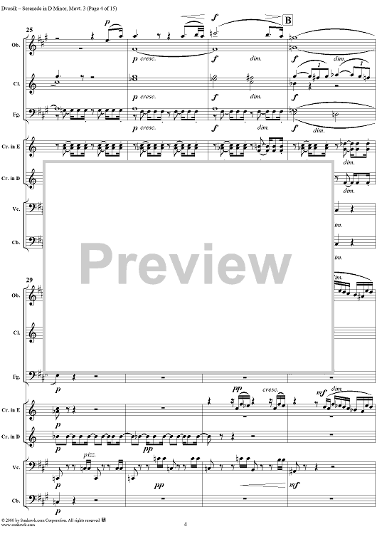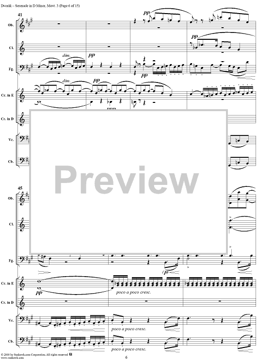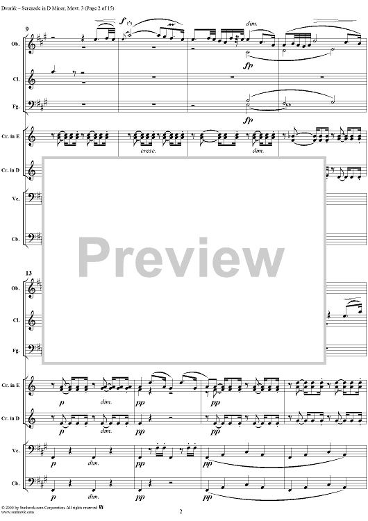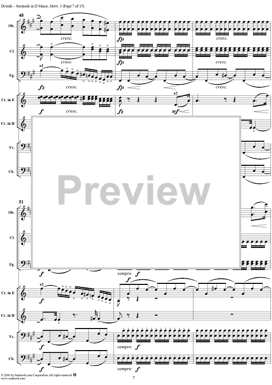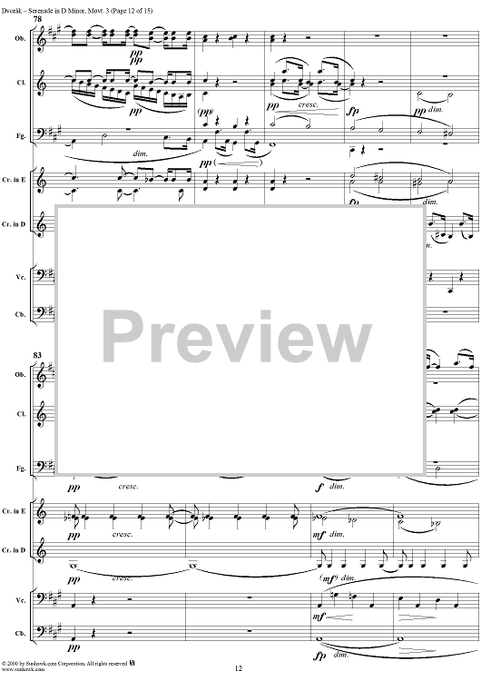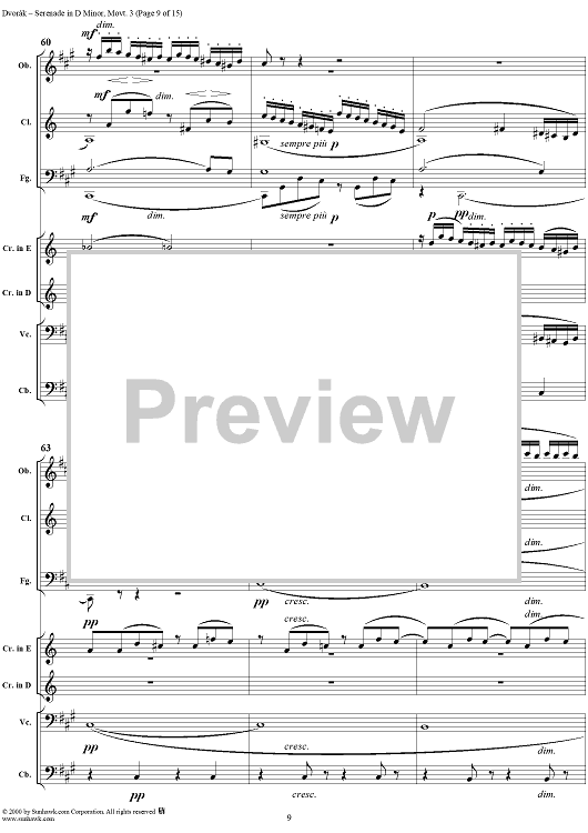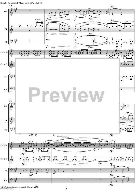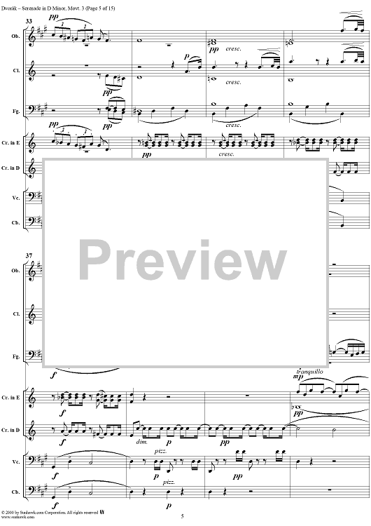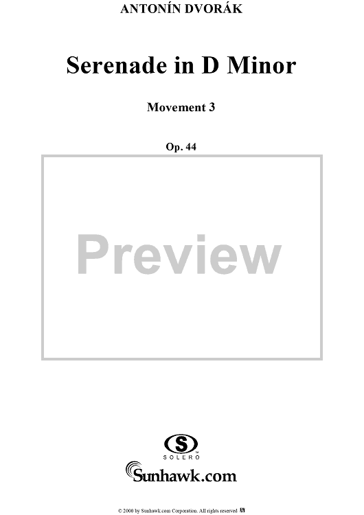 "Serenade in D Minor, Op. 44, B77, Movement 3 - Score" Sheet Music by Antonín Dvorák