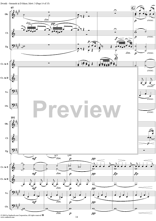 Digital Sheet Music for Serenade in D Minor, Op. 44, B77, Movement 3 - Score by Antonín Dvorák scored for Wind Ensemble; id:270821