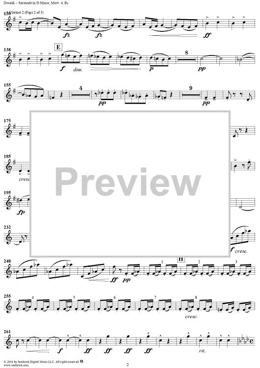Digital Sheet Music for Serenade in D Minor, Op. 44, Movement 4 - B-flat Clarinet 2 by Antonín Dvorák scored for Wind Ensemble; id:306188