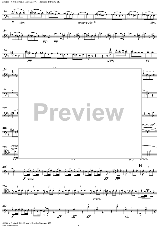 "Serenade in D Minor, Op. 44, Movement 4 - Bassoon 1" Sheet Music by Antonín Dvorák