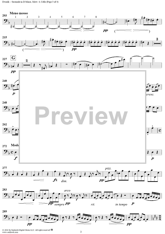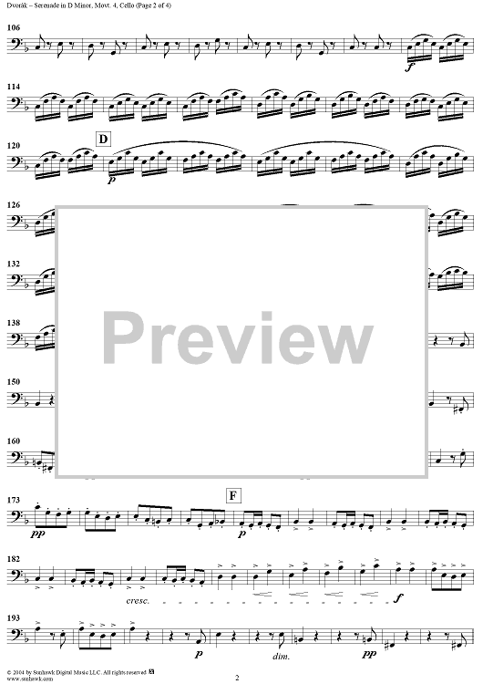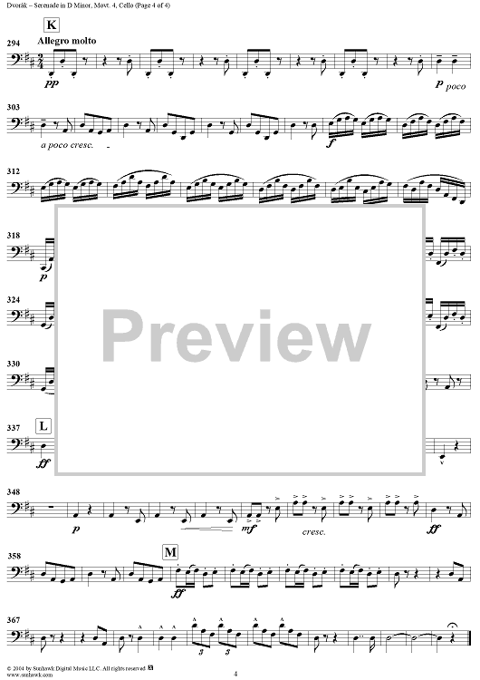 "Serenade in D Minor, Op. 44, Movement 4 - Cello" Sheet Music by Antonín Dvorák