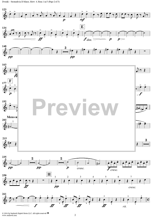 "Serenade in D Minor, Op. 44, Movement 4 - Horn in F 1" Sheet Music by Antonín Dvorák