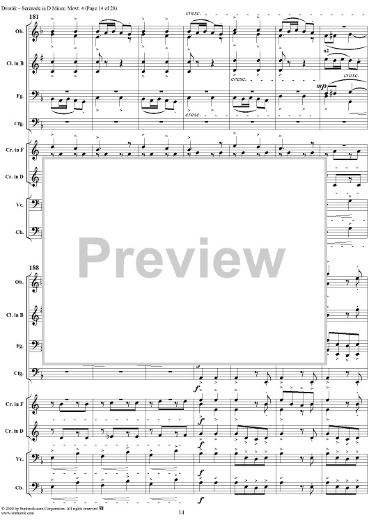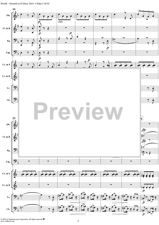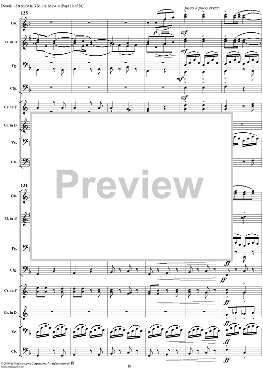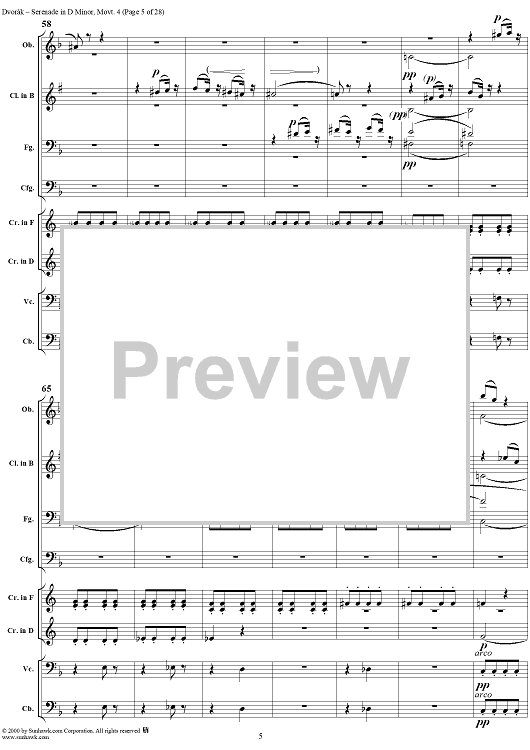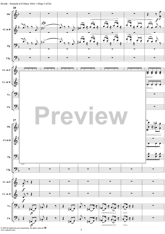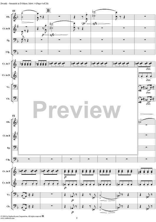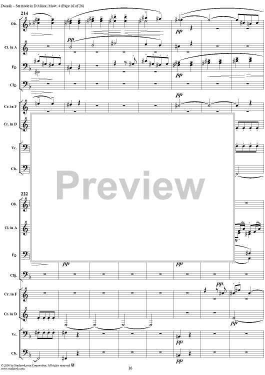 Digital Sheet Music for Serenade in D Minor, Op. 44, Movement 4 - Score by Antonín Dvorák scored for Wind Ensemble; id:270827