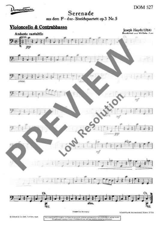 Digital Sheet Music for Serenade in F major - Cello/double Bass by Joseph Haydn scored for Salon Orchestra; id:488208