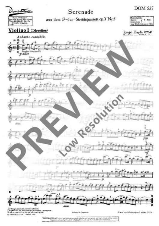 Digital Sheet Music for Serenade in F major - Violin I by Joseph Haydn scored for Salon Orchestra; id:488205